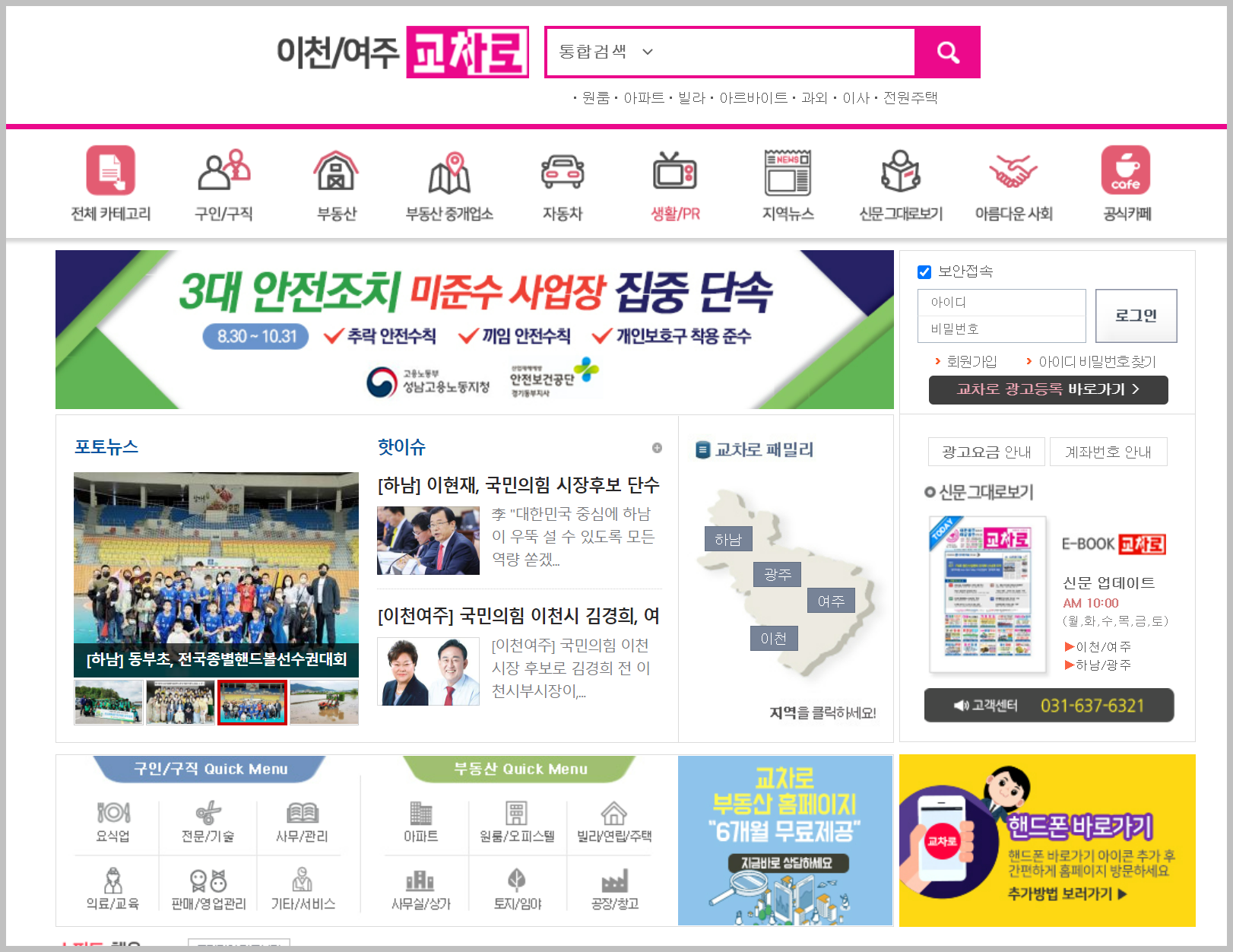 여기서 소개할 교차로신문인 이천교차로 구인구직 신문 역시 웹페이지로 존재합니다. 홈페이지에 들어가기 위해서는 간단하게 이천 교차로 홈페이지라고 검색을 하시면 됩니다.