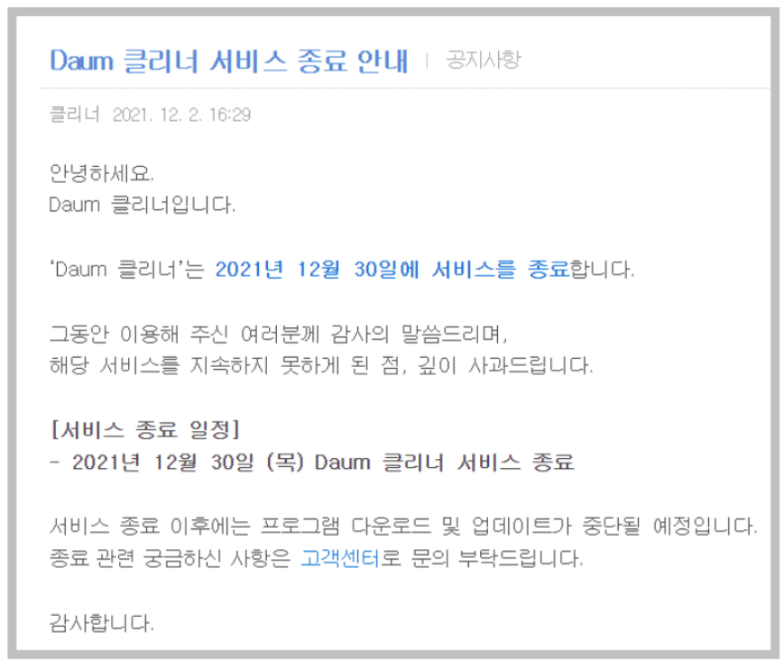 그럼에도 불구하고 제가 다음 클리너를 대체할만한 서비스를 찾는 이유는 컴퓨터는 계속해서 업데이트되고 발전하는데 청소기는 계속 그대로 구식 청소기로 남아있으면 최신 윈도우에 적용하기 어렵기 때문입니다.