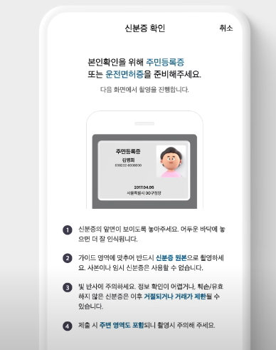 - 신분증 앞면이 보이게 하고